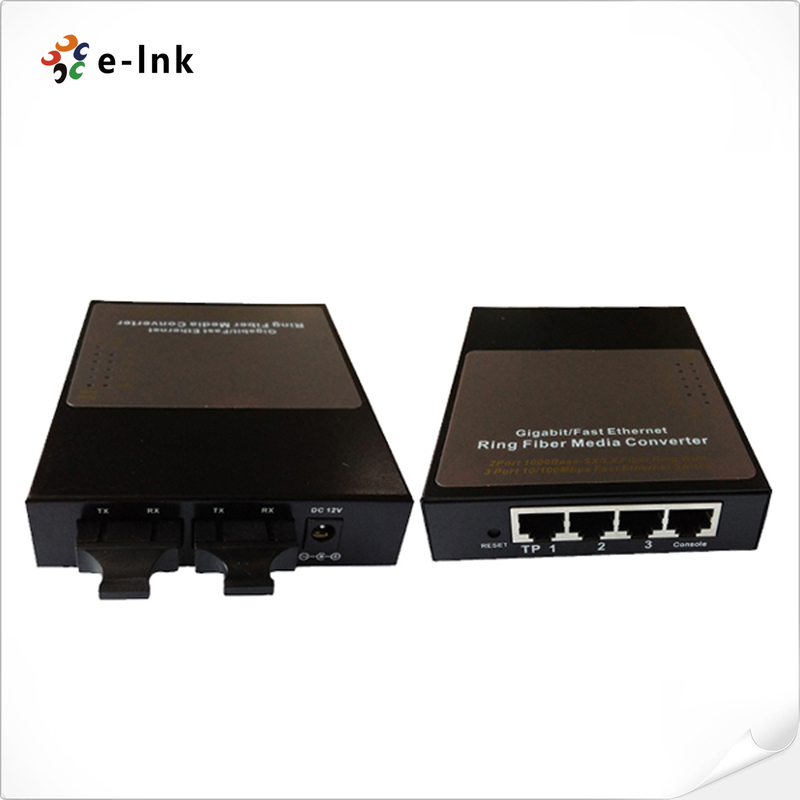 مبدل رسانه نوع حلقه سری E-link LNK-R2300G برای پاسخگویی به الزامات شبکه دسترسی چند فیبر طراحی شده است. این دستگاه 2 پورت فیبر 1000BASE-SX/LX و 3 پورت RJ45 10/100/1000BASE-TX و یک پورت کنسول را ارائه می دهد که نه تنها اتصال شبکه نقطه به نقطه، بلکه شبکه زنجیره ای نقطه به چند نقطه را نیز فراهم می کند. این دستگاه از مدیریت وب و RSR (Rapid Super Ring) پشتیبانی می کند و فاصله انتقال یک شبکه را از 100 متر بر روی سیم های مسی به 120 کیلومتر (دو طرفه تک حالته) افزایش داده است و در سیستم شبکه بزرگراه، سیستم ارتباطی معدن و سایر شبکه های چند نقطه ای زنجیره ای کاربرد دارد.